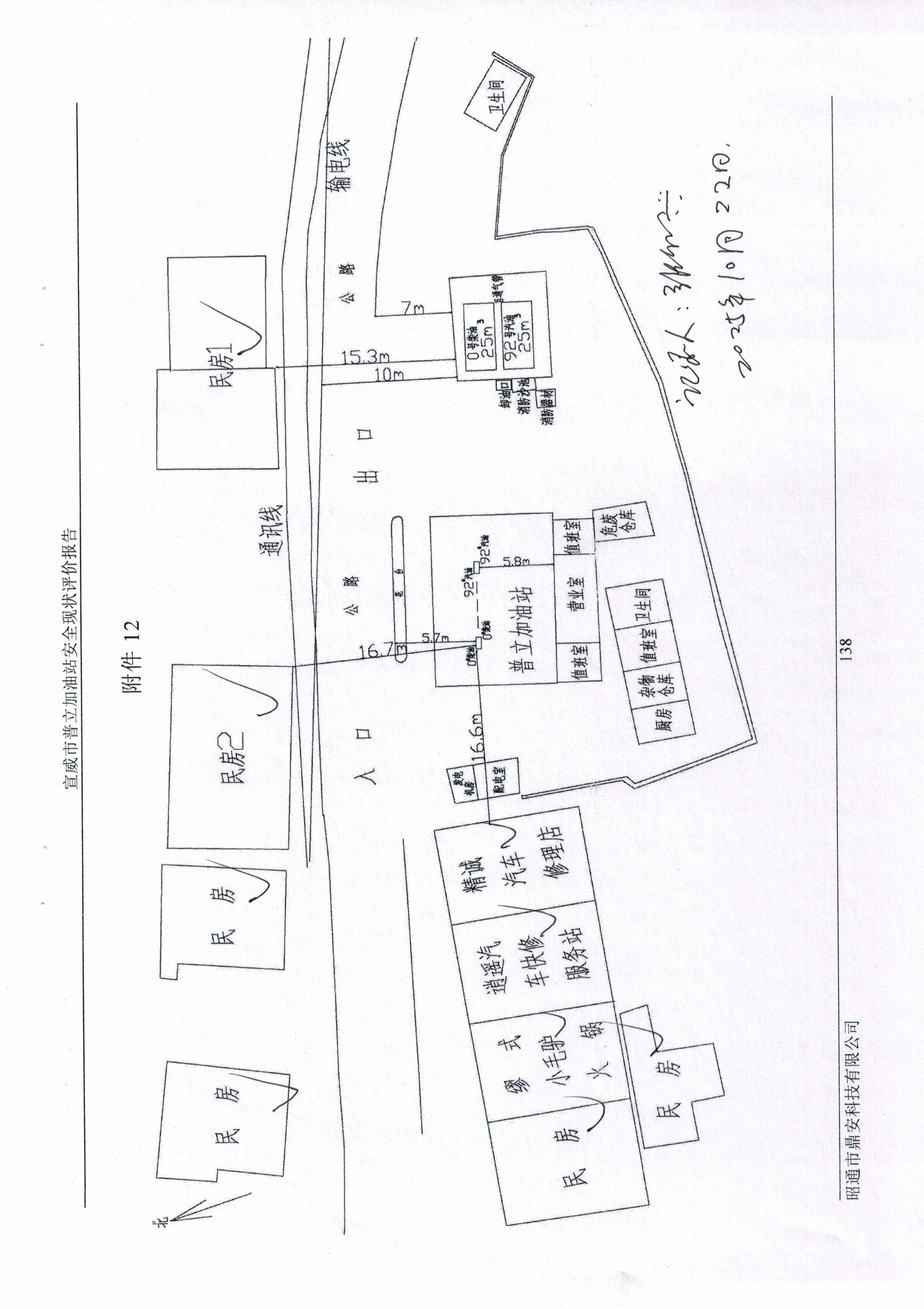 評價結(jié)論為:宣威市普立加油站已完成本次評價發(fā)現(xiàn)的不符合項整改,站址選擇及平面布置、加油工藝及設(shè)施、消防設(shè)施、電氣及報警系統(tǒng)、建(構(gòu))筑物等方面符合《汽車加油加氣加氫站技術(shù)標準》(GB50156-2021)、《加油站作業(yè)安全規(guī)范》(AQ3010-2022)標準規(guī)定;經(jīng)營場所、危險化學品儲存設(shè)施、人員配置及培訓考核、安全管理制度、安全操作規(guī)程、應急預案、應急物資滿足《危險化學品安全管理條例》(國務院令第591號,第645號修改)第三十四條、《危險化學品經(jīng)營許可證管理辦法》(原國家安監(jiān)總局令第55號公布,第79號修正)第六條要求,從安全的角度宣威市普立加油站具備危險化學品經(jīng)營的安全條件。 | ||||||||