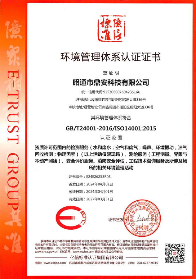 環境管理體系認證證書